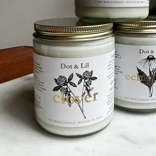 Dot & Lil’s finely hand-poured candles are made with a wax blend of 100% pure soy & botanical oils, with a cotton wick. This 7.2 oz size burns for 45 hours.