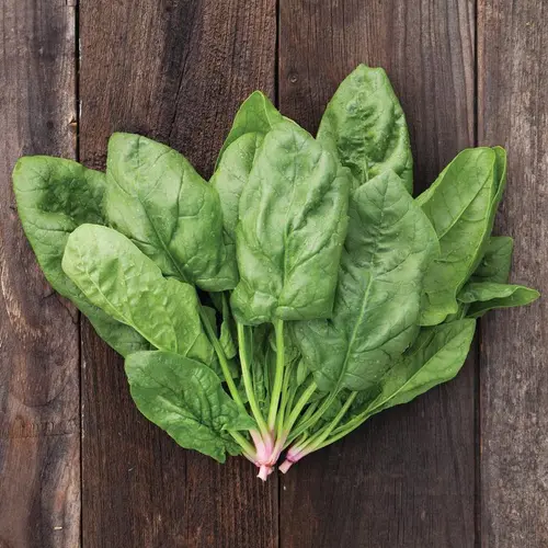 A bolt tolerant spinach with smooth, dark green oval leaves. An all season variety that has good disease and virus resistance, and ideal in winter high tunnels.