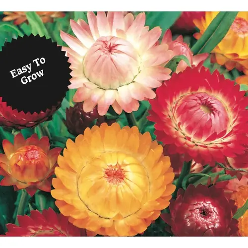 One of the most popular everlasting flowers, strawflowers products colourful, pompom-like flowers that are excellent for use fresh or dried. They come in a wide range of colours, are easy to grow, not fussy about soil and need only moderate watering. Plant with other summer flowers. Direct seed 1-2 weeks before last frost, or sow indoors 4-6 weeks earlier.