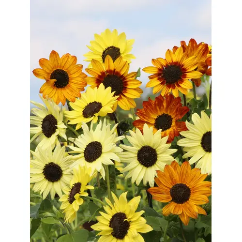 A mix of eye-catching autumn shades including lemon yellow, deep red, bronze, and cream. Branching stems produce an abundance of flowers that attract bees and other pollinators all season long. Grows 1-1.2m (40-45").