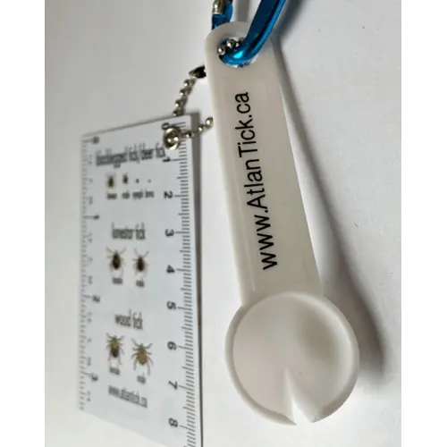 The AtlanTick Tick Scoop Remover Keychain is a must-have for outdoor enthusiasts. This natural lever-based tool removes ticks of all sizes without touching them, reducing the risk of infection.