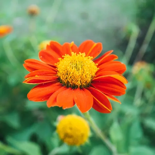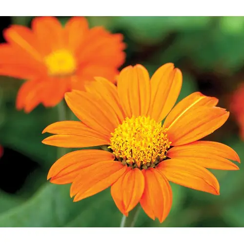 Robust, branching plants with long, toothed leaves that are hairy on the undersides, and bright orange, dahlia-like flower heads up to 7.5cm (3") across. Free-flowering plants that are loved by bees and butterflies and are ideal for cutting. Flowers July-October. Height 100-150cm (40-60").