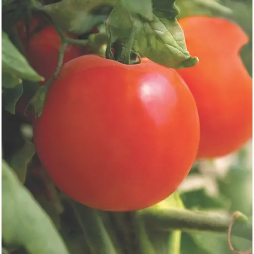 A determinate salad tomato, offers mid-early maturity of extra-large, richly coloured, deep red fruits with good flavour. A high yielding slicer type, it produces deep oblate-shaped fruits with smooth shoulders. Plants are medium to tall and benefit from light to no pruning. Has a wide adaptability and good disease resistance.