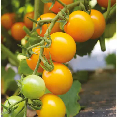 This golden yellow cherry tomato will quickly become a staple in your garden. A flavourful tomato with excellent resistance to cracking and disease. Fruits weigh 15-20g. Great enjoyed fresh off the vine and on the plate. 80 days to maturity. 10 seeds / pkt.