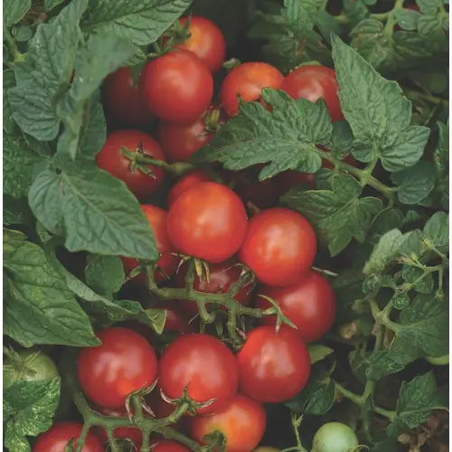 A determinate (grows 45-60cm / 18-24" tall) tomato plant with compact, tidy growth habit. Sets tasty fruits that ripen over a period of a few weeks, allowing harvest of many tomatoes at one time. Yields a large amount of flavor-filled, red, cherry tomatoes. Best grown in containers, with or without support.