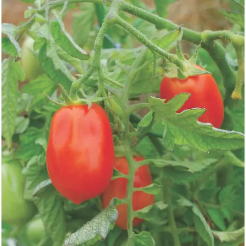 A high quality paste-type tomato, Roma is ideal for canning or making tomato juice and sauces. Its pear-shaped blocky fruits ripen to a bright red with few seeds and firm flesh. The determinate plants bear dozens of low-acid fruits. Resistant to most common tomato diseases.
