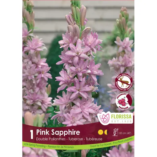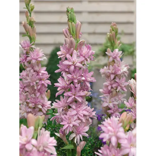 A double, soft pink tuberose! Long stems carry double flowers with a heavenly fragrance. Perfect for a sunny patio container and a superb cut flower.